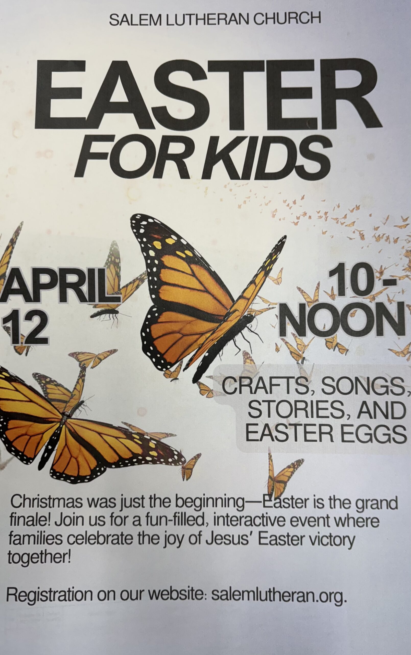Salem’s Easter Event is April 12th from 10-noon and is meant for the whole family to come and enjoy together! Please see the poster attached for more information and register now using this link