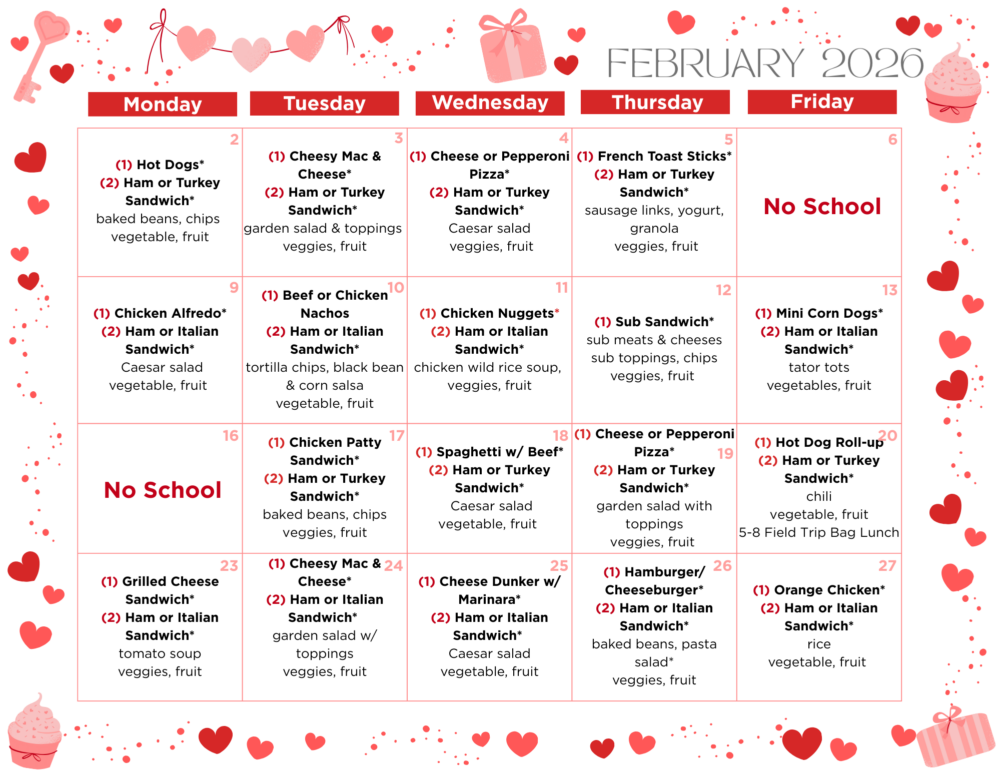 February Lunch Menu By Jess Herbst Friday, January 30, 2026 • 0 min read Posted in Hot Lunch, School News Download Lunch Menu